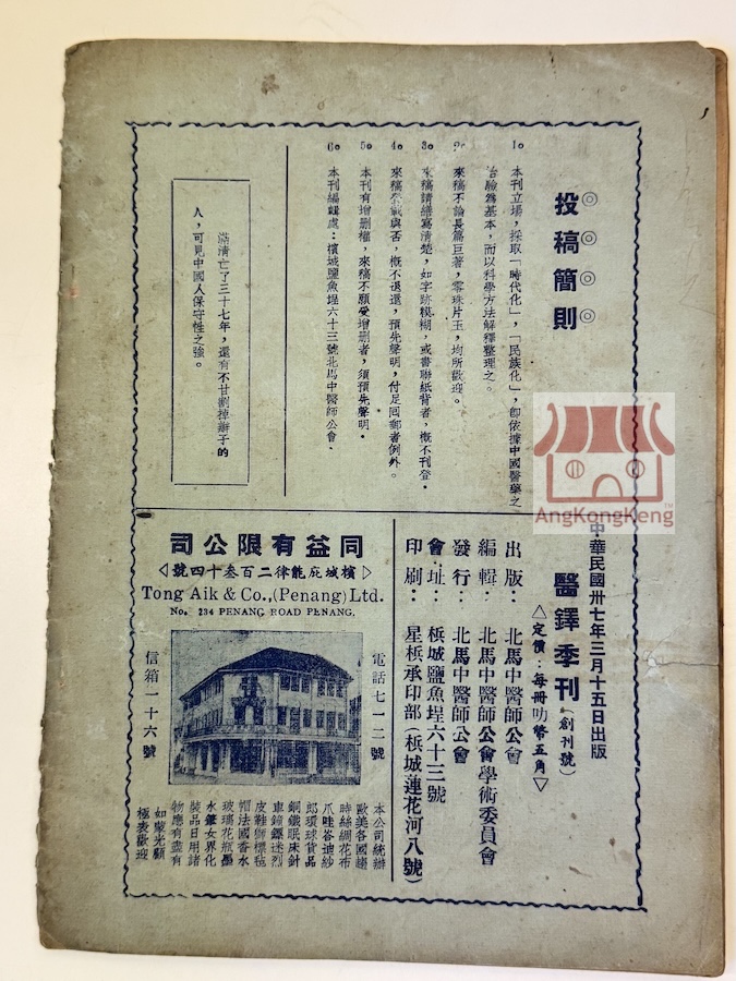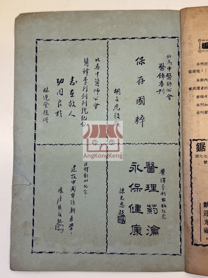 我们的特刊收藏之一,少见的民国卅六1947年北马中医师公会【医铎】季刊创刊号,徐悲鸿题!