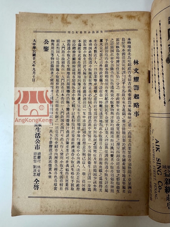 民国廿九1940年槟城生活公市开幕特刊 1940 The Opening of Penang Popular Stalls Co