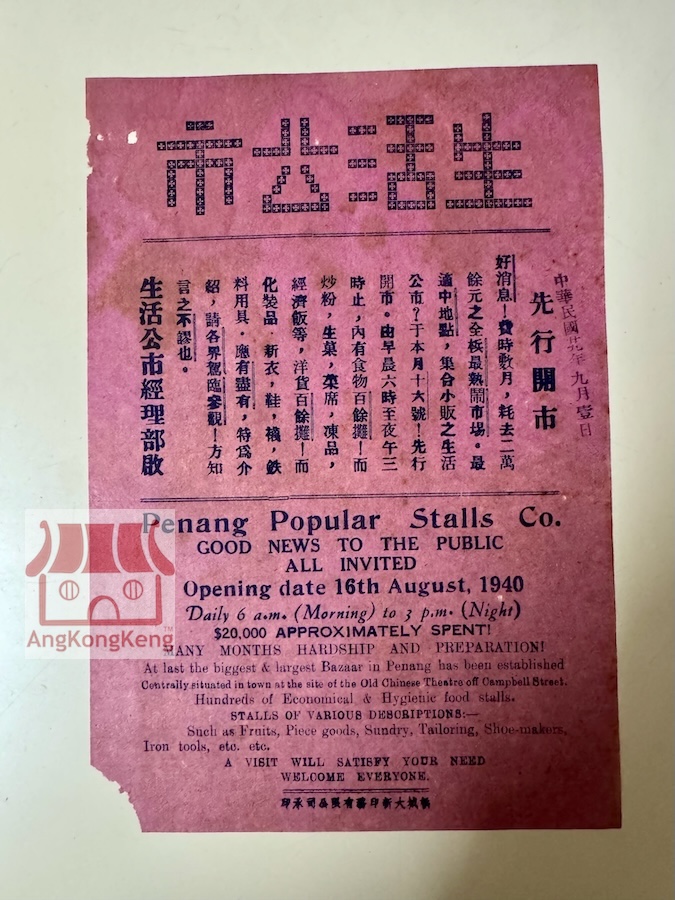 我们的特刊收藏之一,少见的民国廿九1940年槟城生活公市开幕特刊,也许只有老槟城才知道的生活公市. One of our rare collections.... 1940 The Opening of Penang Popular Stalls Co....