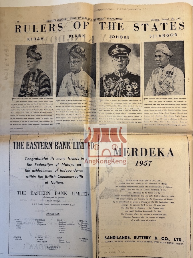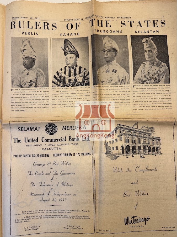 1957年独立日特刊 Monday, August 26, 1957 Straits Echo & Times of Malaya Merdeka Supplement